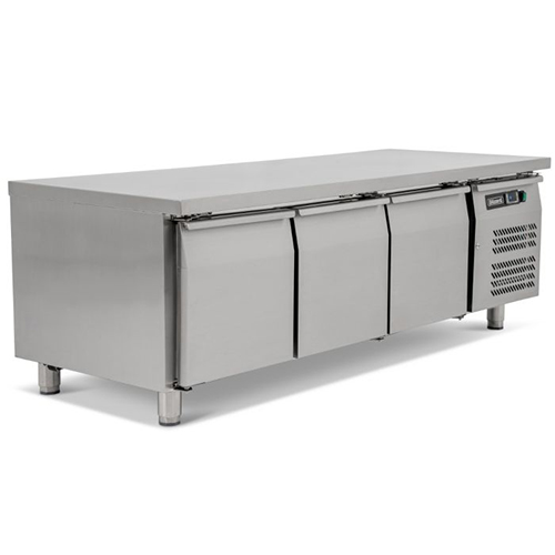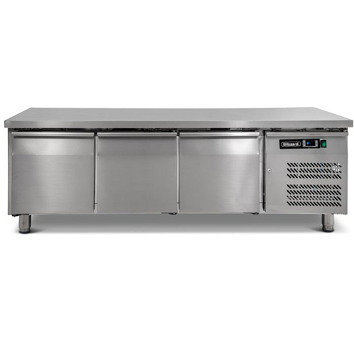 Blizzard SNC3 3 door low snack counter. For high-demand kitchens and catering environments, efficiency is everything and this low-height snack counter fridge is built to keep up. Designed with a generous stainless steel surface area, its perfect for holding cooking or prep equipment such as grills, fryers, or griddles, while offering ample refrigerated storage space below for quick access to ingredients.Constructed from durable stainless steel, this unit ensures long-lasting performance and a sleek professional appearance. It features self-closing doors with a dwell position, three adjustable shelves, and an easy-to-use digital temperature controller for precise cooling management.Ideal for compact or high-traffic kitchens, this low-profile refrigerated counter combines practicality, performance, and premium build quality, making it an outstanding choice for busy foodservice operations that value efficiency and reliability.