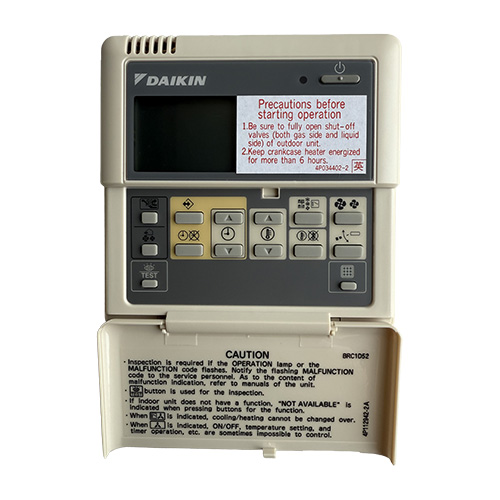 The Daikin BRC1D528 wired remote controller is a versatile and feature-rich control panel designed to manage Daikin air conditioning systems with precision and convenience. Built for wired installation, this controller offers intuitive operation and advanced scheduling features that help balance comfort and energy efficiency. Its suited for residential, commercial, and VRV installations that require dependable control of indoor climate functions.