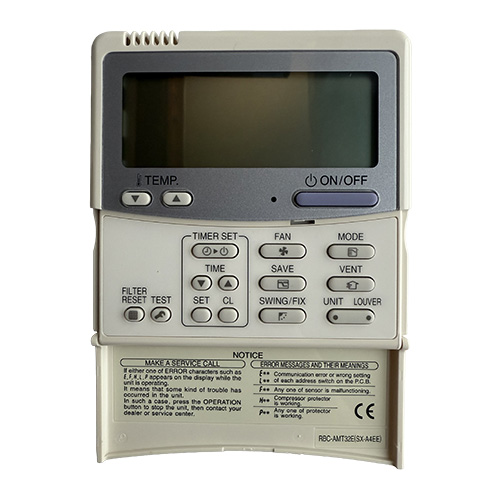 The Toshiba RBC-AMT32E wired remote controller is a reliable and comprehensive control solution designed for wired operation of Toshiba air conditioning systems. Built for both residential and light-commercial installations, this controller offers intuitive control over core HVAC functions and essential service diagnostics via a clear LCD interface.