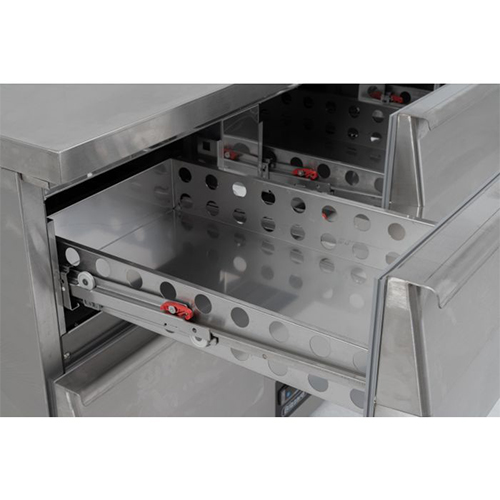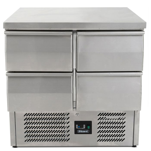 The Blizzard BCC2-4D is a high quality compact refrigerated gastronorm counter with a generous 240 litre capacity, that includes 4 refrigerated drawers. They have been manufactured to offer the best quality, durability and reliability as well as offering exceptional value for money. Front vented, and with an under mounted refrigeration system, they can easily be fitted into an existing equipment line, and it's compact size makes it perfect for smaller commercial kitchens, or kitchens where space is at a premium.