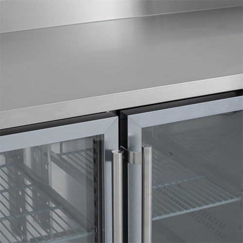 HBC2/CR is a high quality and affordable refrigerated counter solution for commercial catering kitchens. Their glass doors, whilst being attractive, also serve an important kitchen function in making it easier for chefs to see the ingredients available to them without having to open the counter doors, saving energy costs, and reducing the wear on the refrigeration componenets.