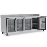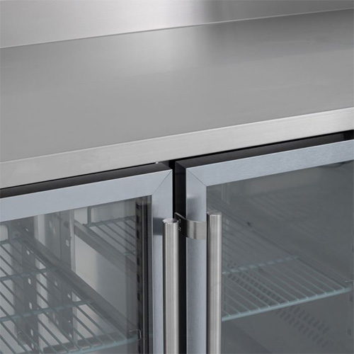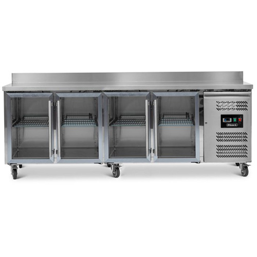 The Blizzard HBC4/CR is a high quality and affordable refrigerated counter solution for commercial catering kitchens. Their glass doors, whilst being attractive, also serve an important kitchen function in making it easier for chefs to see the ingredients available to them without having to open the counter doors, saving energy costs, and reducing the wear on the refrigeration componenets.